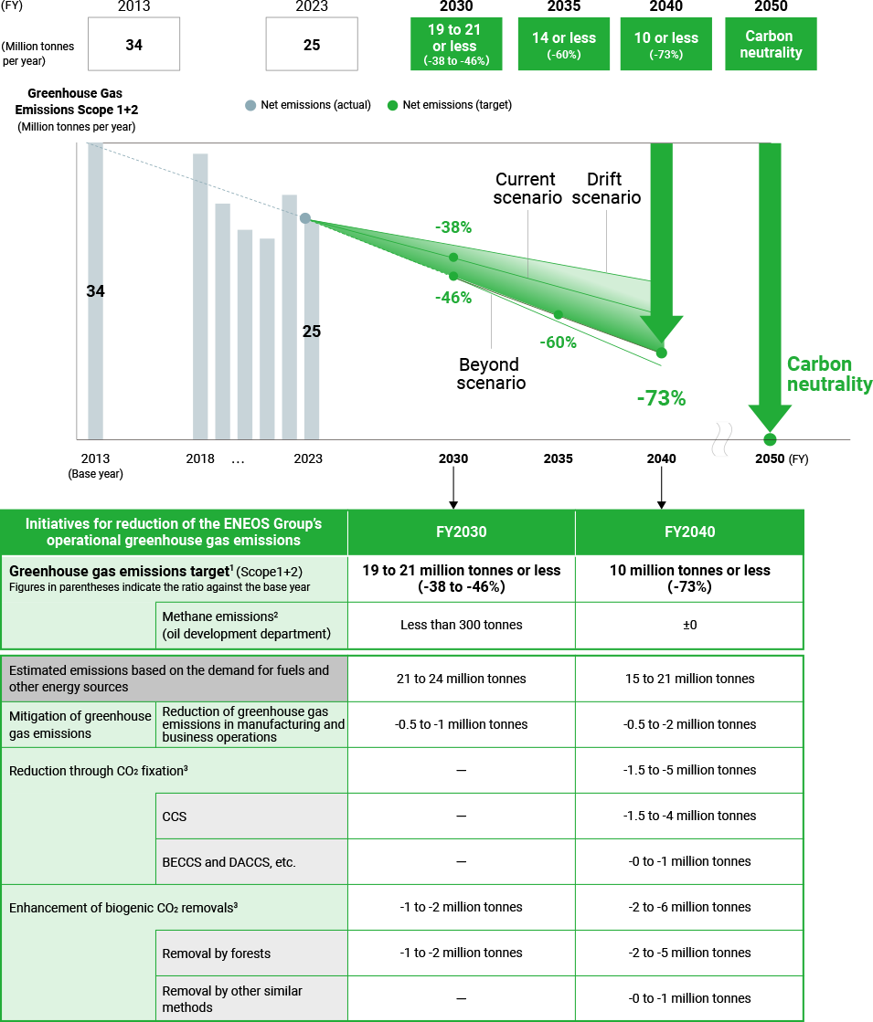 - For details of the ENEOS Group Carbon Neutrality Plan, see our corporate website (Measures to Realize a Carbon-Neutral Society).