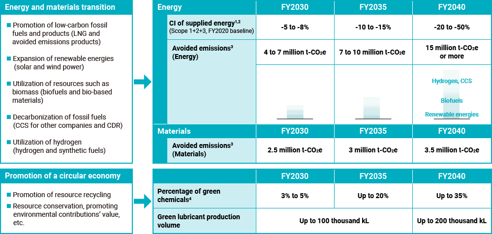 - 3Fiscal 2040 targets are based on the assumption that the external environment, including policies, laws, and technological progress, is sufficiently developed to enable large-scale commercialization.