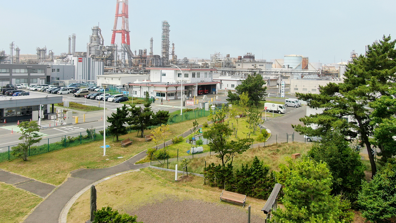 The Sendai Refinery suffered severe damage during the Great East Japan Earthquake of 2011. In the reconstruction process, facilities were rebuilt with an emphasis on coexistence with nature. At the center of this effort is the model green area established within the refinery.
