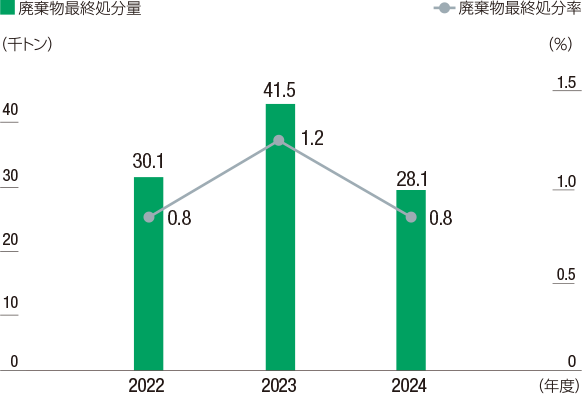 当社グループは、ゼロエミッション(最終処分率1%未満)の維持を目標に掲げ、廃棄物の適正管理・再資源化に取り組んでいます。