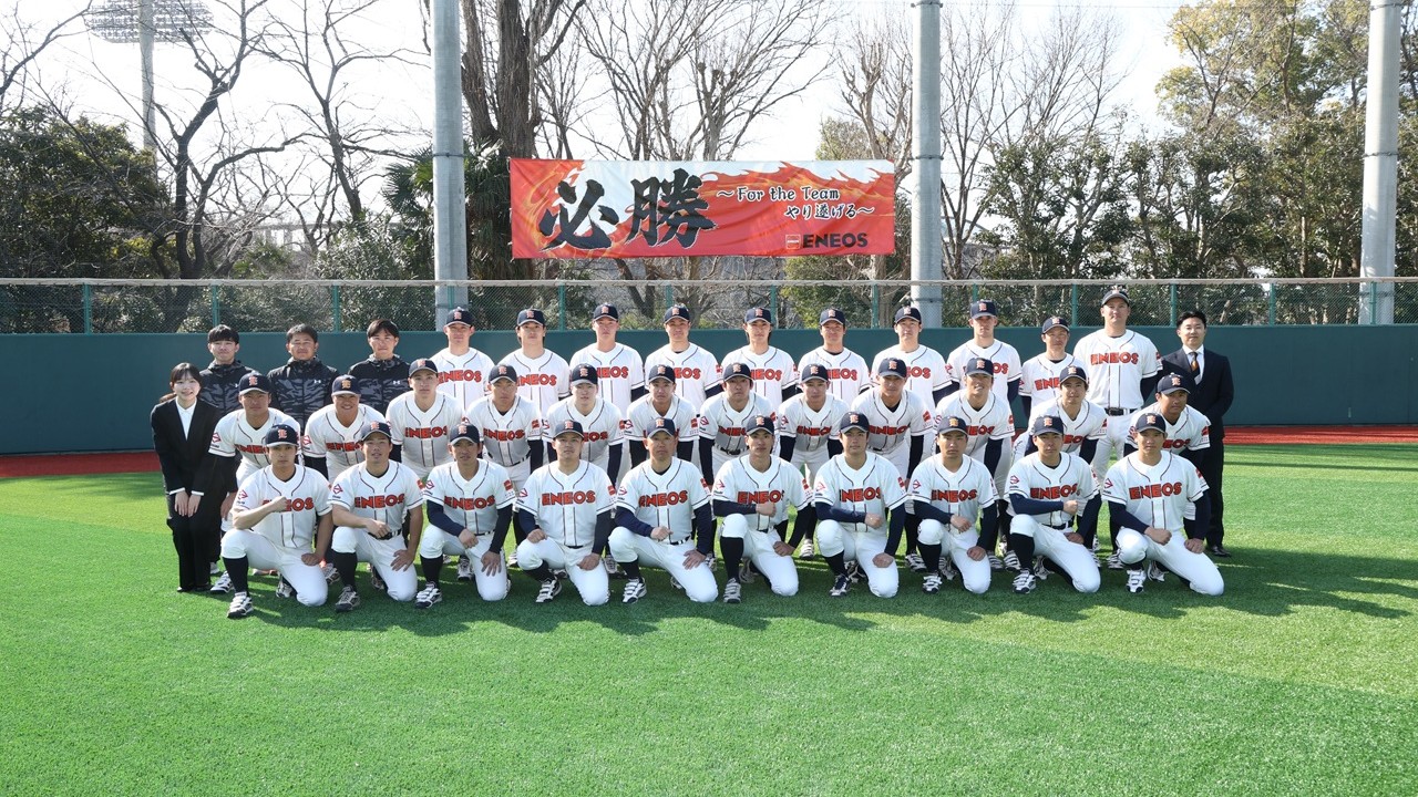 2026年のENEOS野球部は「必勝~For the Team やり遂げる~」というスローガンのもと、勝つことに対して最大の努力と準備をして活動していきます。チーム目標としては、社会人野球の2大大会である都市対抗出場を勝ち獲るために、その西関東予選を突破すること。また、都市対抗、日本選手権の優勝を目標に活動していきます。そして、チームが勝つために全員がやるべきことを徹底し、最後までやり続けるという、ENEOS野球部の伝統・文化を次の世代にも繋げていきます。
