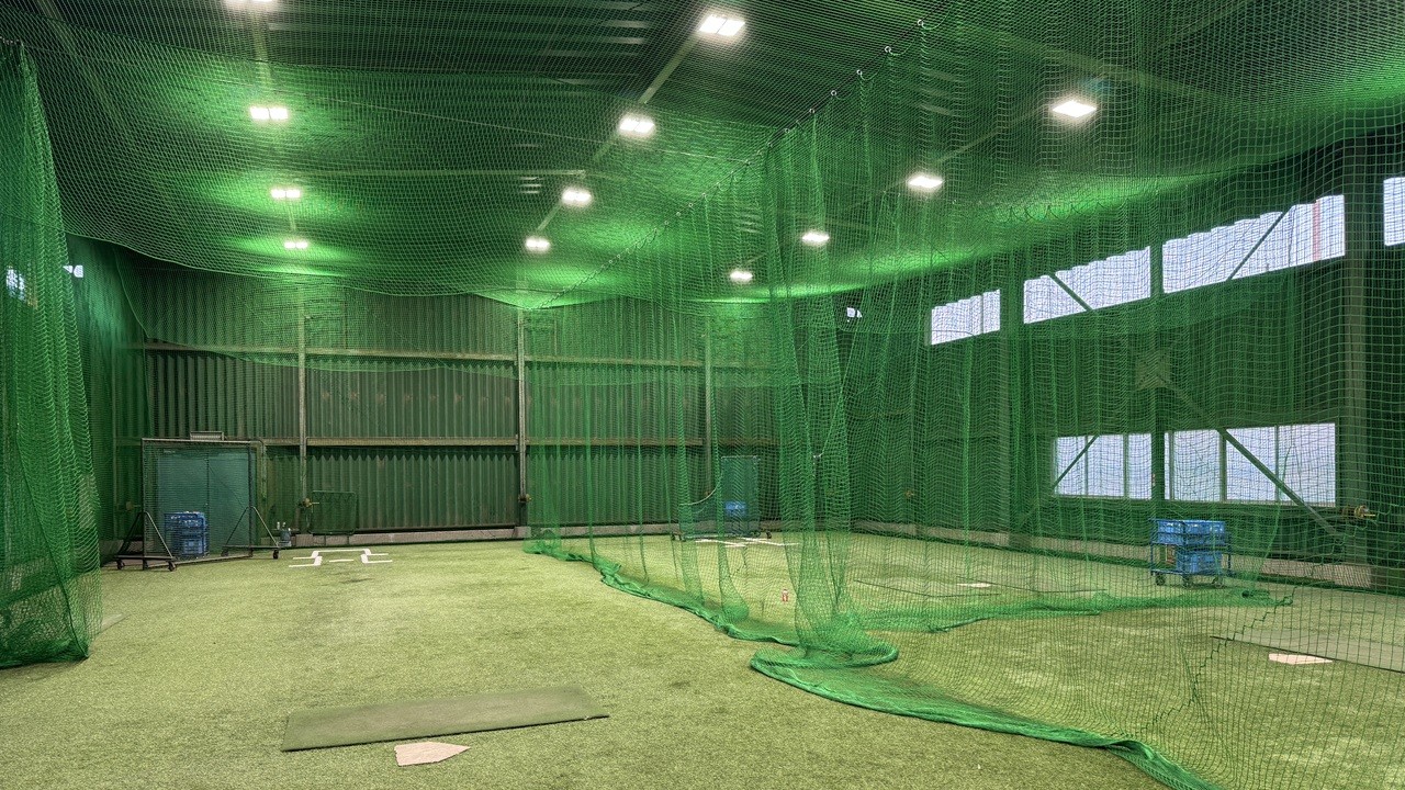続いて、堀田さんと山田選手は室内練習場に移動しました。ここでは、天候に左右されることなく、バッティングや守備などの基礎練習を行うことができます。バッティング練習では、実際の試合を想定して行っていました。具体的には、「〇アウト、ランナー〇塁」というように状況を設定し、その状況に応じてバント、犠牲フライ、ヒットエンドラン等を選手自らが判断し実践していました。