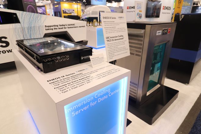 今回、ENEOSの展示ブースでは、日本のQuantum Mesh社、アメリカのGreen Revolution Cooling (GRC)社、イギリスのIceotope Technologies社のサーバー液浸冷却デモ機を設置し、ブース来場者の強い興味・関心を集めました。