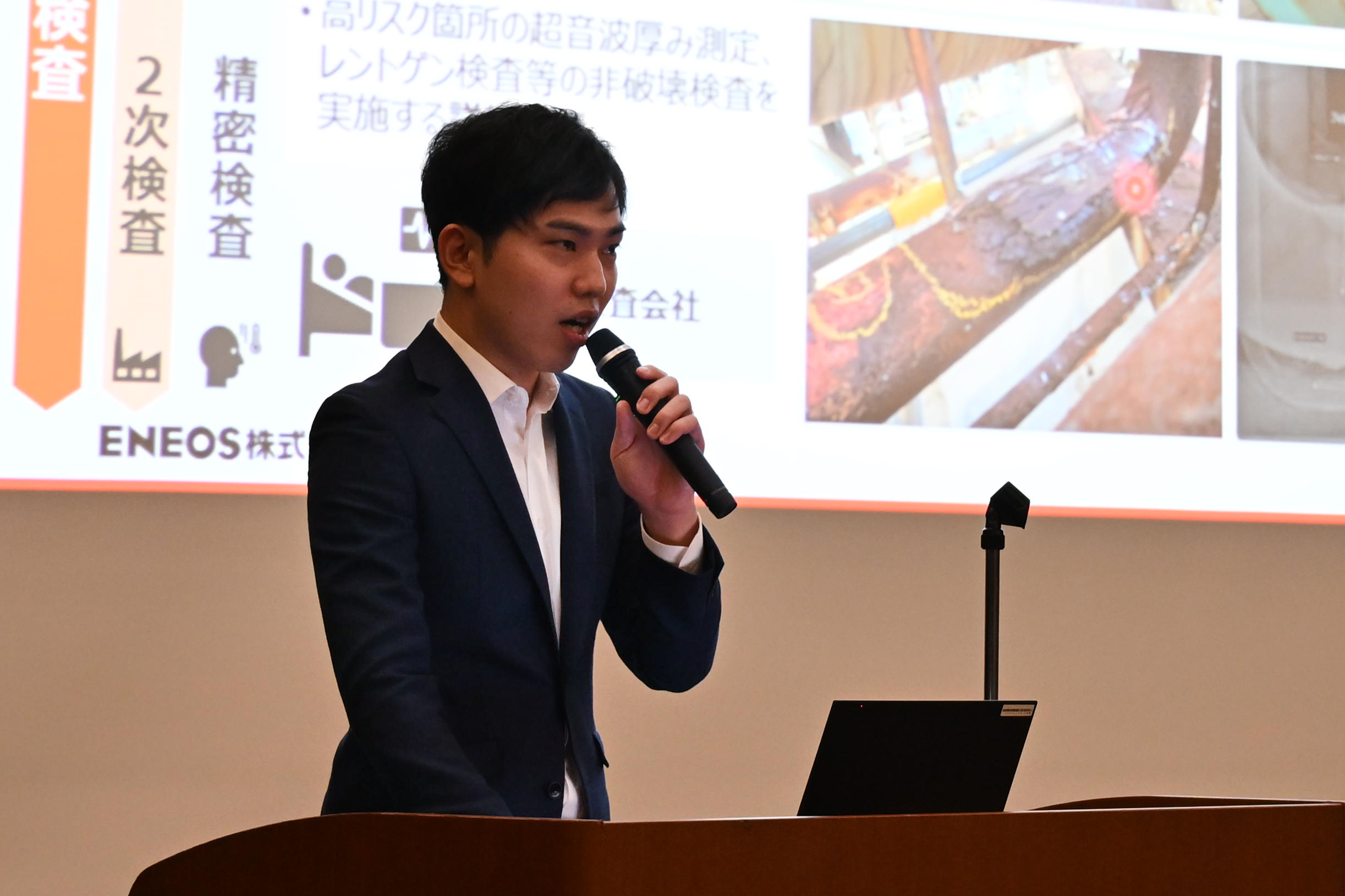 本記事では、その中から川崎製油所設備検査2グループの光山大貴さんと、技術計画部次世代技術グループの田中宏和さんの共同発表「①外面腐食検査DX 1次検査の品質向上×効率化への取り組み」を取り上げて、ご紹介します。