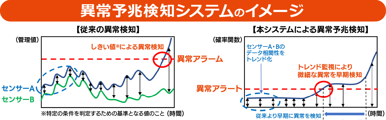 これは、AI解析によって設備の故障を事前に検知するシステムです。製油所には、温度や圧力、振動などを測る数万個のセンサーが設置されています。これまでは、それぞれのセンサーのデータごとにしきい値を設定し運転員が確認したり、現場で音や振動に異常がないかを調査していました。しかし、設備が故障してから異常に気づくのでは、修理の時間や費用で大きなロスが生じてしまいます。そこで、人間には判別できないデータ同士の相関性からAspen Mtellが故障につながる可能性がある異常の種を検知することで、重大な故障を回避することが期待されます。